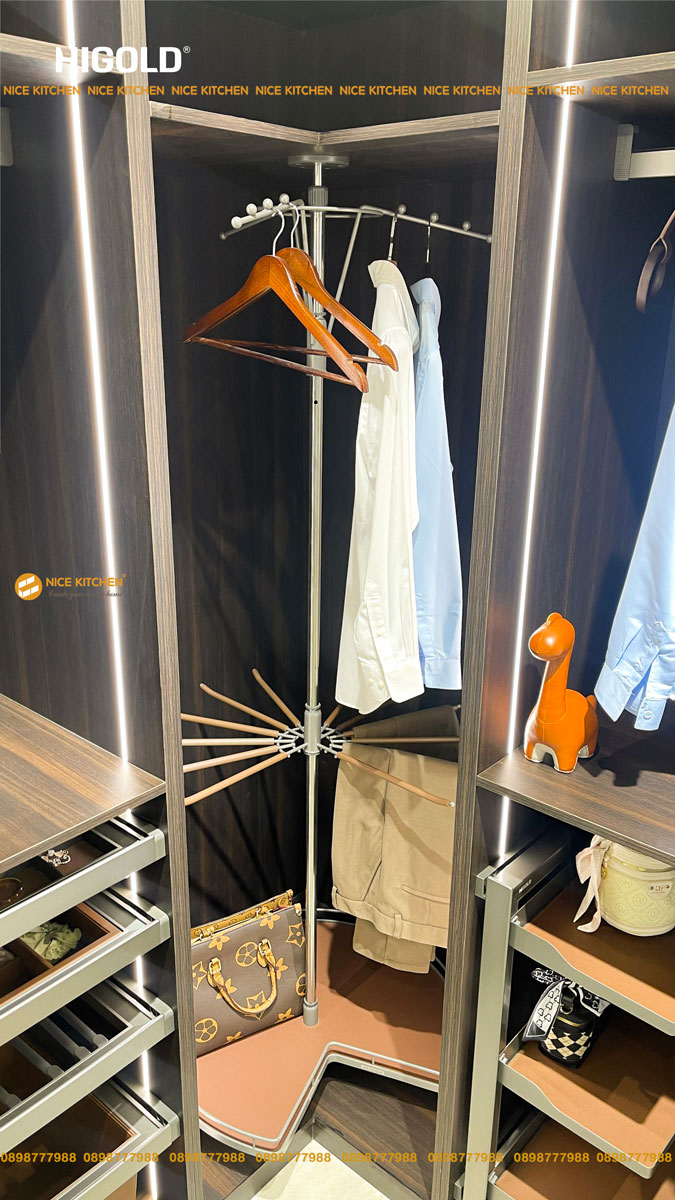 Góc xoay treo quần áo Series A xám cao cấp Higold – Giải pháp lưu trữ thông minh cho góc tủ