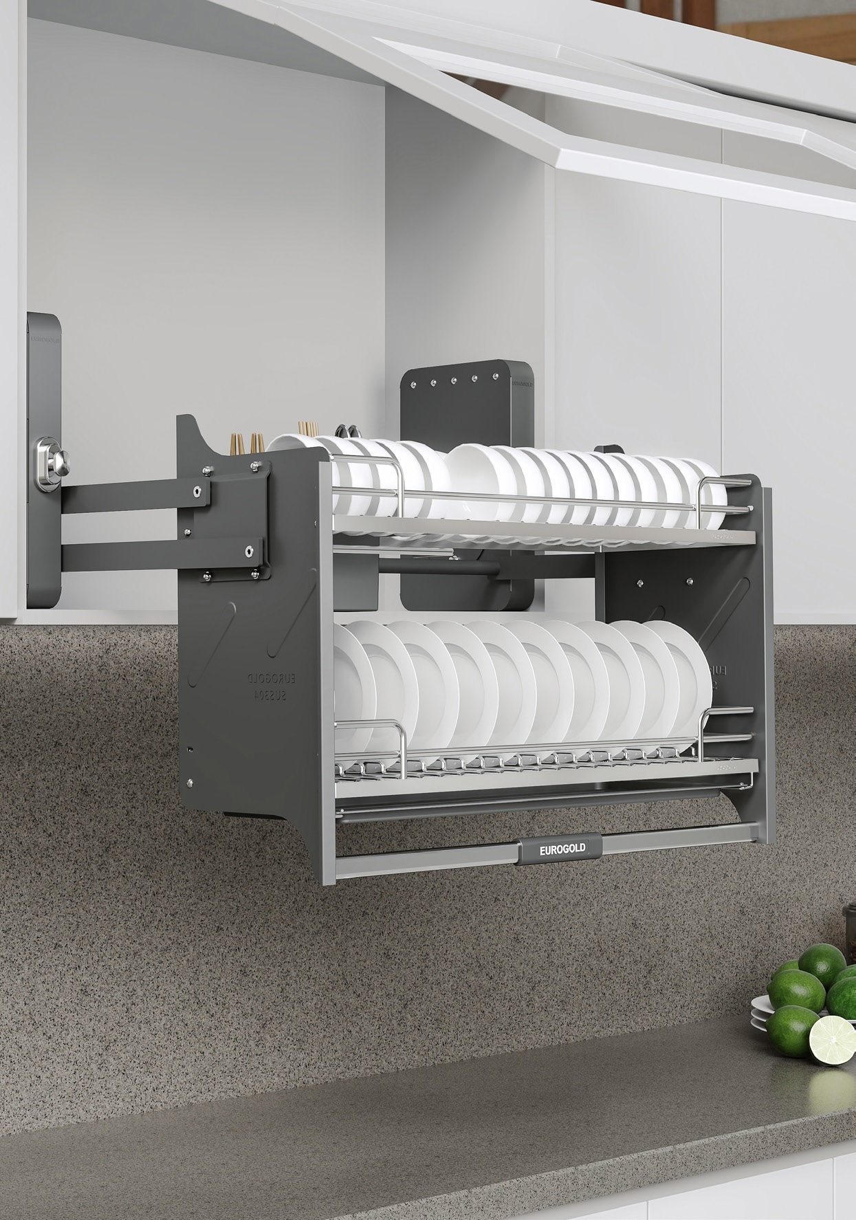 Giá bát đĩa nâng hạ EUROGOLD Inox 304 nan Oval – Lựa chọn tối ưu cho căn bếp hiện đại