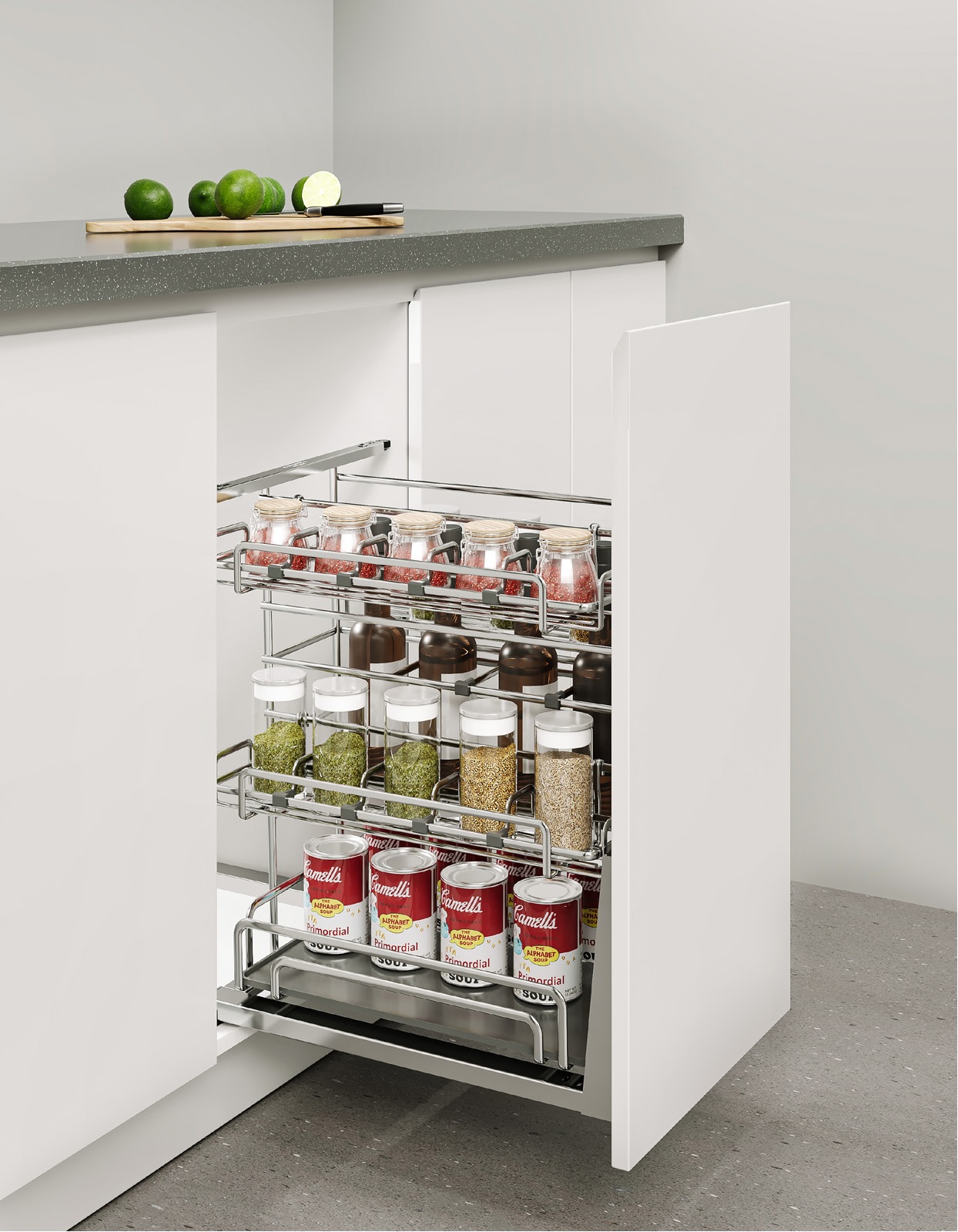 Động tác kéo ra/đẩy vào mượt mà, nâng tầm trải nghiệm bếp hiện đại.